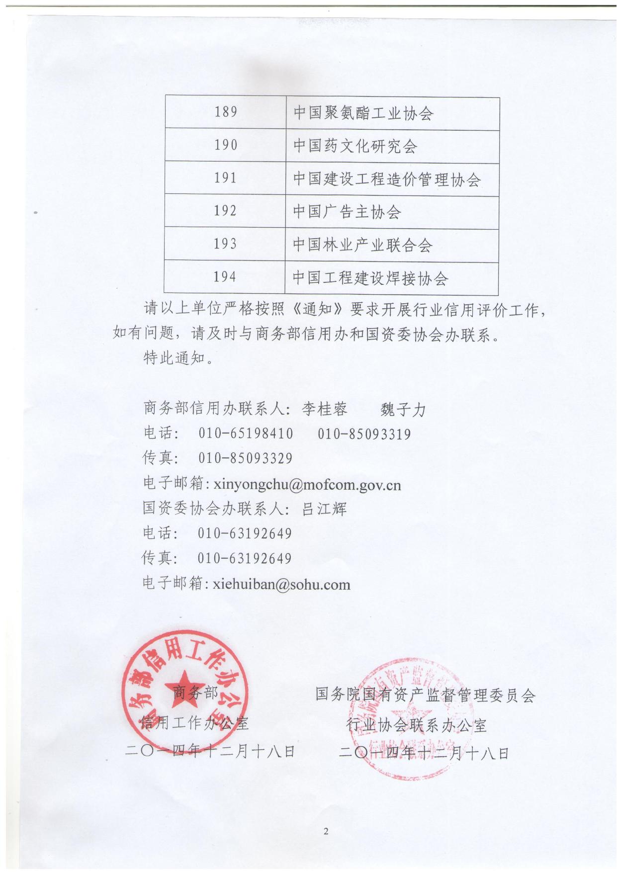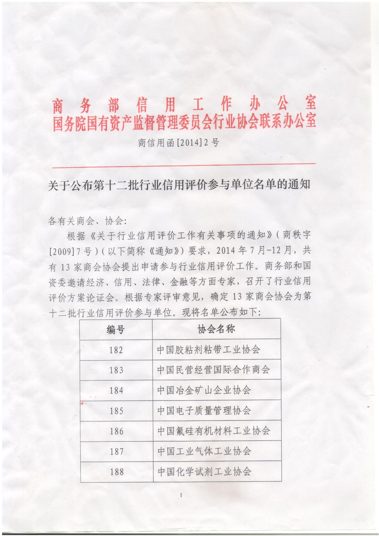 关于公布第十二批行业信用评价参与单位名单的通知